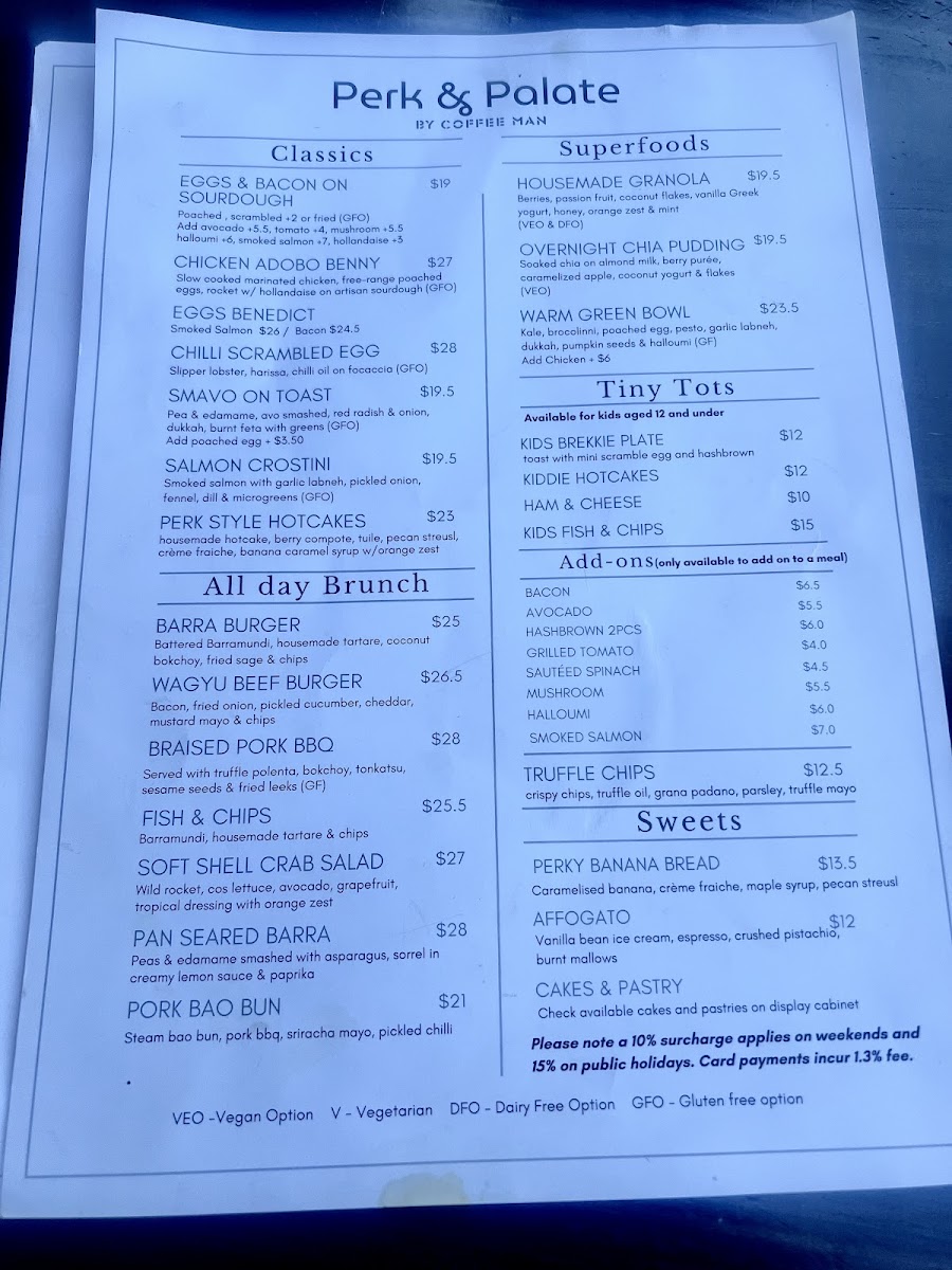 Welcome to Perk and Palate, the trendy café nestled in the heart of Darwin City, where culinary delights and vibrant vibes abound. The menu showcases a kaleidoscope of flavors, with highlights that cater to every palate. Indulge in the must-try Chili Scrambled Eggs with Slipper Lobster, celebrated in glowing customer reviews for its unforgettable taste.