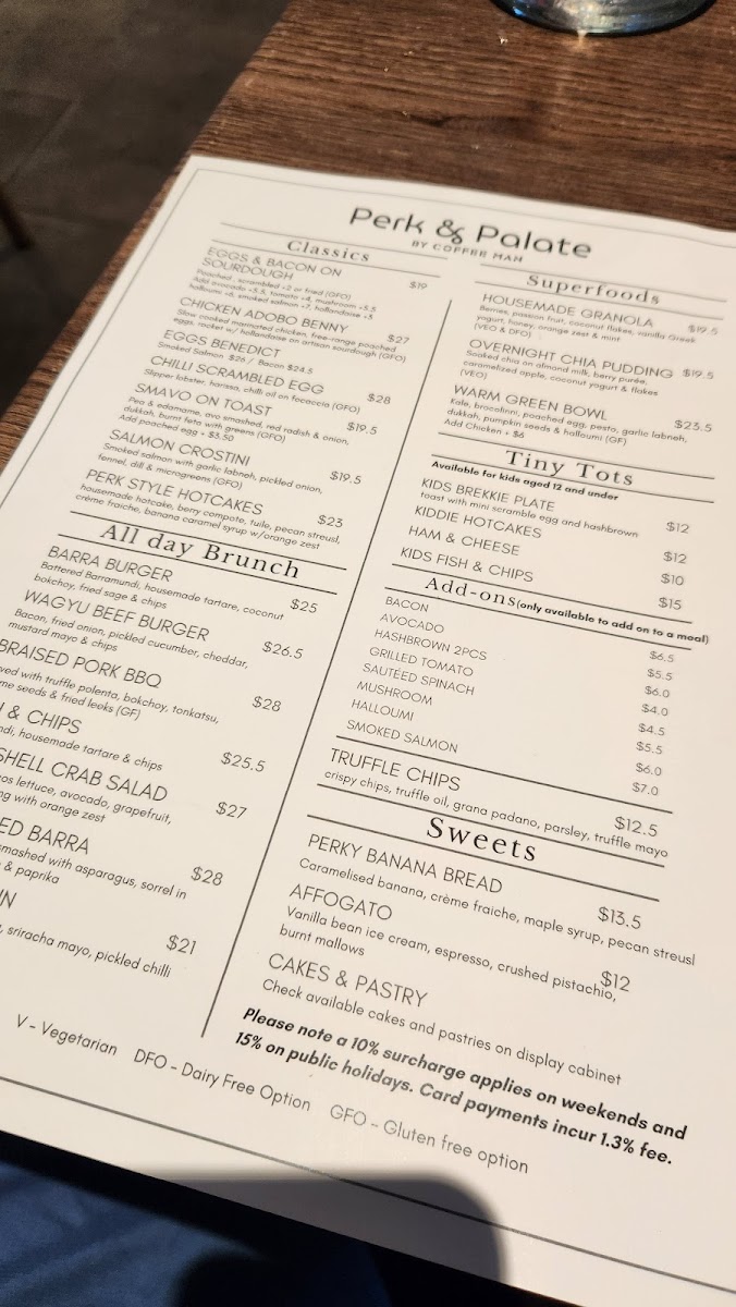 At Perk and Palate, the atmosphere buzzes with friendliness. Ideal for casual brunches or catching up with friends, it's a must-visit destination for food enthusiasts in Darwin.